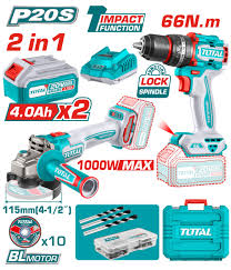 Le TCKLI20273 est un pack d’outils électroportatifs sans fil de la marque TOTAL Tools, fonctionnant sur une plateforme de 20V.